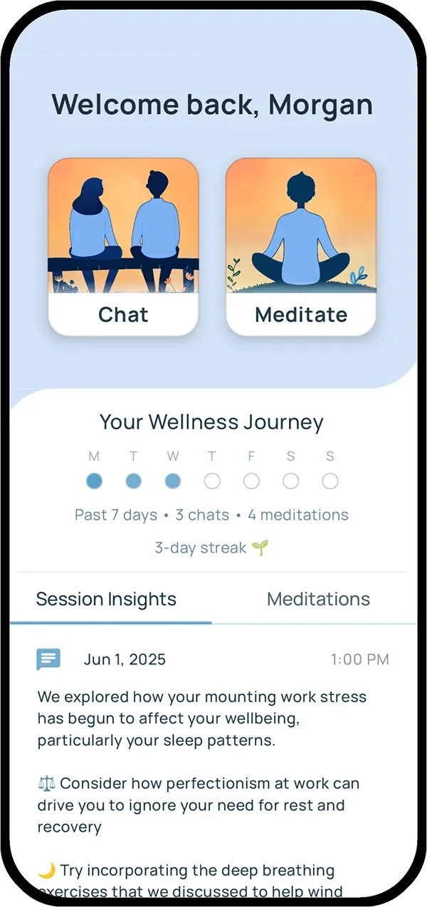 Or download Wellness AI for personalized meditations and AI therapy, available whenever you need support